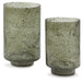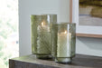 Create an even cozier ambiance in your home with this candle holder set. Their green sanded glass makes the soft glow of electric or real candles all the more beautiful. Stunning when displayed as a duo or standing alone, these holders are a simple way to upgrade the style of your space.