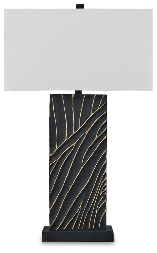 Signature Design by Ashley®Looking for a unique take on casual style? You’re gonna love this table lamp. Its vertical line-patterned base, finished in chic black, is sculptur...