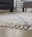 Shake up your style with woven shag. This area rug offers a deliciously comfortable underfoot experience. With a diamond design and braided tassel edge, this floor covering carries a variegated gate pattern in beige, white and shades of gray to elevate your room.