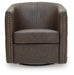 | Details | Faux leather upholstery, Barrel back and loose seat cushion, Metal swivel base, Nailhead trim with antiqued brass-tone finish, Tufted sides, 360-degree swivel | |