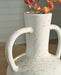 This eye-catching vase, with its delicate black speckles and graceful handles, is the perfect statement piece to elevate your tablescape. Crafted from glazed terra cotta, it serves as a magnificent vessel for your favorite dried or faux florals. This piece stands beautifully on its own, or as part of a splendidly stylish trio with the coordinating vase and bowl (sold separately).