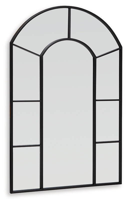 Signature Design by Ashley®This mirror takes a classic wall accent and upgrades it with simple details. An arched design and paneled perimeter are framed with metal in a vers...