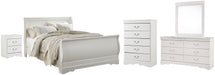 Anarasia Queen Sleigh Bed with Mirrored Dresser, Chest and Nightstand