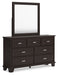 | Details | B441B9: Includes panel headboard, footboard, rails and slats, Made with hardwood solids, engineered wood veneer and MDF substrates, Dark brown finish, Floating panel headboard, Picture frame footboard, Foundation/box spring required, sold separately , Mattress available, sold separately, Assembly required, B441B1: Includes dresser and mirror, Made with hardwood solids, engineered wood veneer and MDF substrates, Dark brown finish, Metal bar pulls with bright nickel-tone finish, 7 smooth-gliding drawers with dovetail construction and metal center guides, Drawer interiors are lined with a wood grain laminate for a clean, finished look, Top moulding on dresser, Mirror attaches to back of dresser, B441-92: Made with hardwood solids, engineered wood veneer and MDF substrates, Dark brown finish, Metal bar pulls with bright nickel-tone finish, 2 smooth-gliding drawers with dovetail construction and metal center guides, Drawer interiors are lined with a wood grain laminate for a clean, finished look, Top moulding, | |
