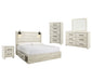 Cambeck King Panel Bed with 4 Storage Drawers with Mirrored Dresser, Chest and Nightstand