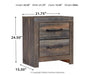 Details B211-46: Made of engineered wood (MDF/particleboard) and decorative laminate, Brown rustic finish with burnt orange and teal accents in a replicated wood grain with authentic touch, Large-scale hardware with dark finish, 5 smooth-gliding drawers, Drawer interiors are lined with a faux linen laminate for a clean, finished look, Includes tipover restraint device, Small Space Solution, Safety is a top priority, clothing storage units are designed to meet the most current standard for stability, ASTM F 2057 (ASTM International), Drawers extend out to accommodate maximum access to drawer interior while maintaining safety, B211-92: Made of engineered wood (MDF/particleboard) and decorative laminate, Brown rustic finish with burnt orange and teal accents in a replicated wood grain with authentic touch, 2 smooth-gliding drawers, Drawer interiors are lined with a faux linen laminate for a clean, finished look, Large-scale hardware with dark finish, 2 slim-profile USB-C charging stations, Power cord included; UL Listed, Small Space Solution, B211B1: Made of engineered wood (MDF/particleboard) and decorative laminate, Brown rustic finish with burnt orange and teal accents in a replicated wood grain with authentic touch, 6 smooth-gliding drawers, Drawers lined with faux linen laminate, Dark-tone industrial hardware, Mirror attaches to back of dresser, Assembly required, Includes tipover restraint device, B211B54: Includes headboard, footboard, under bed side storage and wood roll slats, Made of engineered wood (MDF/particleboard) and decorative laminate, Brown rustic finish with burnt orange and teal accents in a replicated wood grain with authentic touch, 4 drawers and 4 open cubbies that each accommodate 10.5"W x 10.5"D x 11"H cube storage bin (not provided), 2 decorative sconce LED lights, each runs on 3AA batteries, 2 USB charging ports, Power cord included; UL-listed, Bed does not require additional foundation/box spring; accommodates most zero clearance adjustable bases with the addition of a bunkie board, Dark-tone industrial hardware, Mattress available, sold separately, Assembly required,
