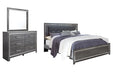 | Details | B214B1: Made of engineered wood (MDF/particleboard) and decorative laminate, Gray finish with replicated wood grain, Faceted chrome-tone pulls and accents, 6 smooth-operating drawers, Drawers lined with faux linen laminate, Mirror attaches to back of dresser, Includes tipover restraint device, Assembly required, B214B10: Includes headboard, footboard and side rails, Made of engineered wood (MDF/particleboard) and decorative laminate, Gray finish with replicated wood grain, Faux leather upholstery, Faux crystal and faceted chrome-tone metal accents, Accent LED lights with remote to control color and brightness, Power cord included; UL Listed, Foundation/box spring required, sold separately, Mattress available, sold separately, Assembly required, Bed is compatible with an adjustable base, | |