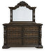 | Details | B947B10: Includes upholstered poster headboard panel, poster footboard panel, rails, slats, posts and canopy , Made with hardwood solids, oak veneer, MDF substrates and cast resin components, Dark brown finish, Metal canopy, Foam headboard cushion with polyester upholstery, Measure room, including ceiling height, to ensure bed clears fans and light fixtures, Foundation/box spring required, sold separately, Mattress available, sold separately, Assembly required, B947B1: Includes dresser and mirror, Made with hardwood solids, oak and ash swirl veneers, MDF substrates and cast resin components, Dark brown finish, 6 smooth-gliding drawers with dovetail construction (top drawer felt lined), Drawer pulls with antiqued goldtone finish, Mirror attaches to back of dresser, B947-46: Made with hardwood solids, oak and ash swirl veneers, MDF substrates and cast resin components, Dark brown finish, 5 smooth-gliding drawers with dovetail construction (top drawer felt lined), Drawer pulls with antiqued goldtone finish, B947-93: Made with hardwood solids, oak and ash swirl veneers, MDF substrates and cast resin components, Dark brown finish, 2 smooth-gliding drawers with dovetail construction (top drawer felt lined), Pull-out tray behind bottom drawer, Drawer pulls with antiqued goldtone finish, 110V power supply with dual USB charging ports, Power cord included; UL Listed, | |