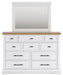 | Details | B844B2: Includes panel headboard, storage footboard, rails and roll slats, Footboard made with hardwood solids, MDF substrates and butcher block oak veneer, Headboard and rails made with hardwood solids and MDF substrates, White finish, Headboard with inset black metal barn sash, 2 drawers in footboard with fully finished interior, dovetail construction and ball-bearing side glides, Pulls with matte black finish, Bed does not require a foundation/box spring, Mattress available, sold separately, Assembly required, B844B1: Includes dresser and mirror, Made with hardwood solids, MDF substrates and butcher block oak veneer, Dresser with 2-tone finish (white finish; butcher block oak veneer with natural finish), Pulls with matte black finish, 10 spacious drawers with fully finished interiors (top drawers felt lined), dovetail construction and ball-bearing side glides , Drawers with inset picture fronts, Mirror attaches to back of dresser, B844-93: Made with hardwood solids, MDF substrates and butcher block oak veneer, 2-tone finish (white finish; butcher block oak veneer with natural finish), Pulls with matte black finish, 3 spacious drawers with fully finished interiors (top drawers felt lined), dovetail construction and ball-bearing side glides, 110V power supply with dual USB charging ports, Power cord included; UL Listed, Drawers with inset picture frame fronts, | |