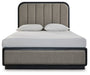 Rowanbeck Queen Upholstered Panel Bed with Mirrored Dresser and Nightstand