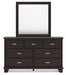 | Details | B441B2: Includes panel headboard, footboard, rails and slats, Made with hardwood solids, engineered wood veneer and MDF substrates, Dark brown finish, Floating panel headboard, Picture frame footboard, Foundation/box spring required, sold separately , Mattress available, sold separately, Assembly required, B441B1: Includes dresser and mirror, Made with hardwood solids, engineered wood veneer and MDF substrates, Dark brown finish, Metal bar pulls with bright nickel-tone finish, 7 smooth-gliding drawers with dovetail construction and metal center guides, Drawer interiors are lined with a wood grain laminate for a clean, finished look, Top moulding on dresser, Mirror attaches to back of dresser, | |