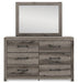 | Details | PCB2405B12: Includes panel headboard/footboard and rails, Made with engineered wood (MDF/particleboard/plywood) and decorative laminate for the right balance of affordability and durability , Weathered gray finish over replicated oak grain, Decorative laminate replicates natural or man-made material surfaces with consistent color, pattern and texture, Foundation/box spring required, sold separately , Mattress available, sold separately, Minor assembly required, PCB2405B1: Includes dresser and mirror, Made with engineered wood (MDF/particleboard/plywood) and decorative laminate for the right balance of affordability and durability , Weathered gray finish over replicated oak grain, Decorative laminate replicates natural or man-made material surfaces with consistent color, pattern and texture, Large-scale dark colored handles, 6 smooth-gliding drawers, Drawer interiors are lined with a faux linen laminate for a clean, finished look , Safety is a top priority, clothing storage units are designed to meet the most current standard for stability, ASTM F 2057 (ASTM International), Drawers extend out to accommodate maximum access to drawer interior while maintaining safety, Mirror attaches to back of dresser; can also be mounted on wall horizontally or vertically , Minor assembly required, | |