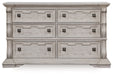 | Details | Made with hardwood solids, oak and ash swirl veneers, MDF substrates and cast resin components, Antiqued white finish, Hardware with antiqued bronze-tone finish, 6 smooth-gliding drawers with fully finished interiors, English dovetail construction and heavy-duty ball-bearing side glides (top drawers felt lined) | |