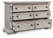 Inspired by the grandeur and grace of European traditional style, this opulent dresser is nothing short of stunning. Its large-scale decorative scrolled pilasters, along with an ash swirl border and walnut inlay crowning the top, are sure to make a sophisticated statement in your restful retreat. A timeless antiqued white coloration and bronze-tone drawer pulls lend an air of subtle elegance to this sumptuous piece.