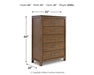 | Details | Made with hardwood solids, hickory veneer and MDF substrates, Light brown glazed finish to enhance the natural wood grain characteristics, Handles with aged pewter-tone finish, 5 drawers with fully finished interior, dovetail construction and ball-bearing side glides | |