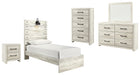 | Details | B192-46: Made of engineered wood (MDF/particleboard) and decorative laminate, Wispy white finish over replicated oak grain with authentic touch, Large-scale hardware with dark finish, 5 smooth-gliding drawers, Drawer interiors are lined with a faux linen laminate for a clean, finished look, Safety is a top priority, clothing storage units are designed to meet the most current standard for stability, ASTM F 2057 (ASTM International), Drawers extend out to accommodate maximum access to drawer interior while maintaining safety, B192-92: Made of engineered wood (MDF/particleboard) and decorative laminate, Wispy white finish over replicated oak grain with authentic touch, Large-scale hardware with dark finish, 2 smooth-gliding drawers, Drawers lined with faux linen laminate for finished aesthetic, 2 slim-profile USB charging stations, Power cord included; UL Listed, B192B1: Includes dresser with mirror, Made of engineered wood (MDF/particleboard) and decorative laminate, Wispy white finish over replicated oak grain with authentic touch, 6 smooth-gliding drawers, Drawer interiors are lined with a faux linen laminate for a clean, finished look, Large-scale hardware with dark finish, Mirror attaches to back of dresser, Assembly required, B192B2: Includes headboard, footboard and rails, Made of engineered wood (MDF/particleboard) and decorative laminate, Wispy white finish over replicated oak grain with authentic touch, Decorative sconce light, LED with 3 AA batteries, 2 slim-profile USB charging ports, Power cord included; UL-listed, Foundation/box spring required, sold separately, Mattress available, sold separately, Assembly required, Bed is compatible with an adjustable base, | |