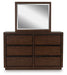 | Details | PCB857B7: Includes canopy, upholstered headboard, footboard, rails, posts and slats, Made with hardwood solids, mango wood veneer and MDF substrates , Side rails feature laminated solid hardwood slat support rails (or LVL) with glued and screwed blocking for added strength, Complex, rich dark brown finish, Foam headboard cushion with polyester upholstery , Measure room, including ceiling height, to ensure bed clears fans and light fixtures, Foundation/box spring required, sold separately , Mattress available, sold separately , USB-A and USB-C charging ports, Power cord included; UL Listed, Assembly required, PCB857B1: Made with hardwood solids, mango wood veneer and MDF substrates , Complex, rich dark brown finish, Full-length metal rail pulls with matte black finish, 6 smooth-gliding drawers with fully finished interiors, dovetail construction and heavy-duty ball-bearing side glides (top drawers felt lined), Mirror attaches to back of dresser, Soft rounded pilasters, Raised plinth base, PCB857-46: Made with hardwood solids, mango wood veneer and MDF substrates, Complex, rich dark brown finish, Metal rail pulls with matte black finish, 5 smooth-gliding drawers with fully finished interiors, dovetail construction and heavy-duty ball-bearing side glides (top drawer felt lined), Soft rounded pilasters, Raised plinth base, PCB857-92: Made with hardwood solids, mango wood veneer and MDF substrates, Complex, rich dark brown finish, Metal rail pulls with matte black finish, 2 smooth-gliding drawers with fully finished interiors, dovetail construction and heavy-duty ball-bearing side glides (top drawer felt lined), Soft rounded pilasters, Raised plinth base, | |