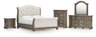 Ardenfield King Upholstered Sleigh Bed with Mirrored Dresser, Chest and Nightstand