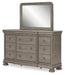 | Details | B924B4: Includes panel headboard and sleigh footboard with rails, Made with hardwood solids, birch veneer and MDF substrate, Light gray finish enhances the natural wood grain, Foundation/box spring required, sold separately, Mattress available, sold separately, Assembly required, B924B1: Includes dresser and mirror, Made with hardwood solids, birch veneer and MDF substrate, Light gray finish enhances the natural wood grain, Ring pull hardware, 9 drawers with fully finished interiors, dovetail construction and ball-bearing side glides, Jewelry drawer conveniently located in the center valance, Mirror attaches to back of dresser, | |