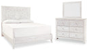 | Details | B181B10: Includes headboard, footboard and rails, Made of engineered wood (MDF/particleboard) and decorative laminate, Whitewash replicated worn through paint with authentic touch, Headboard with adjustable height, Mattress not included, sold separately, Foundation/box spring required, sold separately, Assembly required, Bed is compatible with an adjustable base, B181B8: Dresser with mirror, Made of engineered wood (MDF/particleboard) and decorative laminate, Whitewash replicated worn through paint with authentic touch, Hardware features a worn-through painted effect, 6 smooth-gliding drawers with faux laminate lining, Mirror attaches to back of dresser, Assembly required, | |