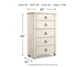 | Willowton Five Drawer Chest | 34''W x 16''D x 53''H | |
