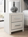 | Details | Made with engineered wood (MDF/particleboard/plywood) and decorative laminate for the right balance of affordability and durability, Matte white finish with subtle replicated wood grain, Decorative laminate replicates natural or man-made material surfaces with consistent color, pattern and texture, Chrome-tone accents, Large-scale chrome-tone handles with faceted details, 2 smooth-gliding drawers, Drawer interiors are lined with a faux linen laminate for a clean, finished look, Slim profile USB-A and USB-C charging ports, Power cord included; UL Listed, Minor assembly required | |