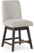Dressed to thrill, this counter height bar stool offers a high-design look at a down-to-earth price. Ultra-sleek lines are accentuated with a dark waxy brown oak-tone finish that’s so easy on the eyes. Suitably upholstered in a tweed-like neutral fabric, the softly contoured back design is tailor-made for comfort. Whether it's part of a dining arrangement or used as extra seating, this timeless bar stool has a look that’s made to last.