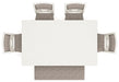 Come together for a delightful dining experience. Chic and relaxed, this dining set effortlessly captivates with its elegant simplicity. The timeless design of the table, chairs and bench pairs a crisp white hue with gray textured upholstery. It's a fresh addition everyone will notice.