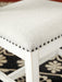 | Details | D546-35: Made of pine wood, veneer and engineered wood, Two-tone finish, Black metal accents, Table extends by pulling both ends and dropping in leaf, Seats up to 8 fully extended, Assembly required, D546-01: Made of solid wood, Distressed vintage white finish with linen colored polyester upholstery, Nailhead trim, Cushioned seat, Assembly required, | |