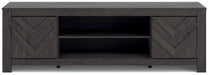 This TV stand embraces a classically charming aesthetic and repurposes it for modern living. Its dark charcoal finish to your love of vintage character, while the chic chevron pattern is effortlessly on trend. And with hidden storage behind the doors, your media accessories stay tucked away in style.