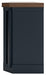 This TV stand combines casual contemporary design with modern appeal. Its combination of a thick-bodied wood-tone top with a slate blue cabinet is a smart choice on so many levels. Stow away electronics in the roomy cabinets, and use the upper shelf to conceal a soundbar speaker for a clean integrated look. Enhancing the experience: the optional fireplace insert (sold separately) brings a touch of warmth and beautiful ambiance to your living room.