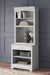 Make a style statement with this home office bookcase. Its traditional design is updated with an on-trend distressed whitewash finish. A hutch with LED underlighting shines a light on those elusive reading glasses and other desktop items. The bookshelf and drawer space add up to a well-organized work area.
