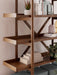 | Details | Made with rubberwood solids, mango wood veneer and MDF substrate, Medium brown natural wood-tone finish, 5 fixed shelves, Round legs | |