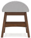 Details Made with solid hardwood frame, Medium brown natural wood-tone finish, Polyester upholstery, Foam cushion