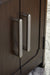 | Details | Made with hardwood solids, oak veneer and MDF substrate, Dark brown wood-tone finish with rich dark grain contrast, Metal door handles with aged pewter-tone finish, 2-door cabinet with adjustable shelf, Assembly required | |