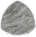 Details Made with decorative laminates and MDF substrate, Tabletop with gray faux marble, Legs with replicated weathered gray wood grain