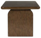 Details Includes coffee table and end table, Made with hardwood veneer and MDF substrate, Medium brown finish with embossed wood grain texture, Assembly required