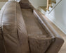 Expansive and elegant, this power recliner makes a sizable style statement. Its large scale enhances the luxe look and magnifies the beauty of faux leather in an earth tone, punctuated with jumbo stitching. One-touch power adjustable headrests mean infinite ways to recline in stylish comfort. USB charging completes the experience.