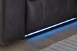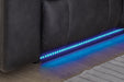 Details Includes 2 pieces: left-arm facing reclining loveseat and right-arm facing reclining loveseat, “Left-arm” and “right-arm” describe the position of the arm when you face the piece, Pull tab reclining motion, Corner-blocked frame with metal reinforced seat, Attached cushions, High-quality foam cushions wrapped in poly fiber, Faux leather upholstery, Console with 2 cup holders and hidden storage, Ambient red, white and blue LED lighting; touch button control in arm, Power cord included; UL Listed