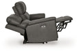 | Details | Dual-sided recliner; middle seat remains stationary, One-touch power control with adjustable positions, Easy View™ adjustable headrest and zero-draw USB-A and USB-C ports, Zero-draw technology only consumes power when the USB receptacle is in use, Zero-gravity mechanism allows optimum reclining comfort with infinite reclining positions at the touch of a button, Corner-blocked frame with metal reinforced seat; attached back and seat cushions, High-quality foam cushions wrapped in poly fiber, 100% top grain leather covers inside areas such as the back, seat and arm cushions; skillfully matched faux leather covers the remaining areas, Due to its natural origin, real leather can show individual characteristics such as healed scars, growth marks, grain variation and shade variation, Natural variations make each hide unique and do not detract from the wearing qualities of leather, Zero wall recliner design requires minimal space between wall and chair back, Zero gap mechanism maintains consistent lower back and lumbar support throughout every stage of reclining for the ultimate relaxation experience, Power cord included; UL Listed | |