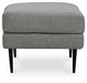 Simple comfort meets modern function in this ottoman. An apt addition to apartments and other small spaces, this slim-profiled companion piece welcomes you with its cozy character. A subtle chevron pattern refreshes the classic neutral hue, elevating the look while still suiting a variety of styles. Black accent legs add a dash of contemporary flair.