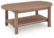 Natural neutrals are all the rage. Embrace the style trend with the Cliffs Beach outdoor coffee table. Crafted with MEGA-TUFF™ HDPE material, this piece combines the exceptional durability and weather resistance you need with the wood look you love. Designed to shed rainwater, the table's slatted top with gently rounded corners provides exceptional form and function. It's the perfect spot for alfresco essentials like a snack tray, drinks or books.