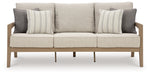 This sofa is a beautiful addition to any outdoor living space. Effortless in its simplicity, this piece echoes your easygoing sensibilities. Combining durable, cutting-edge engineered materials, its Weatherwood construction enhances the contemporary design. Rest assured, the thick cushions and accent pillows are wrapped in high-performance fabric that’s fade-resistant, stain-resistant and a breeze to clean. Pair with the matching loveseat and swivel lounge chair for a spectacular seating arrangement.