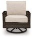 Looking for that special spot to relax and entertain on your deck or patio? Then you'll love the Drakes Beach outdoor swivel rocker lounge chair. With beautifully textured resin wicker over a sturdy aluminum frame, it brings so much style and warmth to your outdoor space. The thick, comfortable cushions are covered in cleanable, UV-resistant Nuvella® fabric, so you can spend less time worrying and more time chilling. What a smart and stylish way to create a beautiful, lasting space for everyone to enjoy.