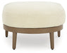 Elevate the appeal of easy-breezy living with this outdoor ottoman. Made to look like wood yet durable enough to weather the elements, it's sure to serve you and your besties well, year after year. The gentle curve of the frame is echoed in the cushion, which is covered in Nuvella+™ high-performance fabric. Talk about plush refinement.