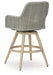 This swivel bar stool invites your casual contemporary style outdoors. With its resin wicker in a chic neutral hue, it expertly marries refined design with durability. The 360-degree swivel makes it easy to switch from watching the kids at the pool to grabbing a drink from the table. And breezy summer mornings and cold winter nights are made all the more comfortable with high-performance Nuvella+™ fabric covering the seat cushion.