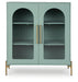 | Details | Made with engineered wood, Light green finish, Goldtone metal door pulls and legs, 2 doors with fluted glass panels, 2 shelves, Minor assembly required, simply lay flat and attach feet | |