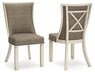 The beauty of this upholstered dining chair is something to savor. Contoured seat cradles you in cushioned comfort while lattice peekaboo detail on the back makes this a striking chair from all angles. Heavy woven fabric adds textural interest that complements the chair’s antiqued white finish.