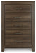 Details Made with engineered wood (MDF/particleboard/plywood) and decorative laminate for the right balance of affordability and durability, Vintage aged brown rough sawn finish over replicated oak grain, Pewter-tone hardware, 5 drawers, Safety is a top priority, clothing storage units are designed to meet the most current standard for stability, ASTM F 2057 (ASTM International), Drawers extend out to accommodate maximum access to drawer interior while maintaining safety, Assembly required