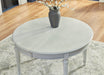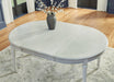 Transform your home into a haven of timeless elegance with this dining extension table. Traditionally styled, its classic antiqued white finish is paired with reeded legs and a tabletop with a butterfly-matched veneer pattern. With the removable center leaf, it effortlessly transitions from round to oval to seat six comfortably. Whether you're settling in at mealtime or working from home, this table serves your sense of relaxed refinement beautifully.